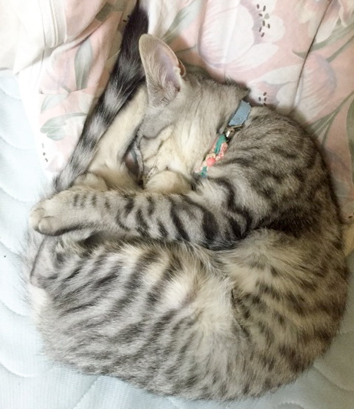 寒くなってきたので、丸くなって寝たり、カーペットの間に入って寝たりしてます。