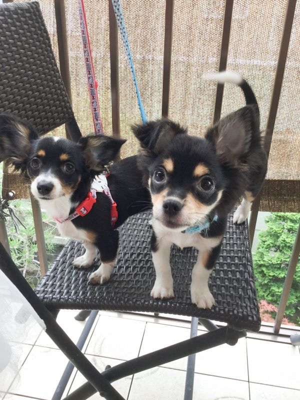 3枚目の水色のリードが相方のそらくん、チワワです。(そらくんは次回ご紹介します!)