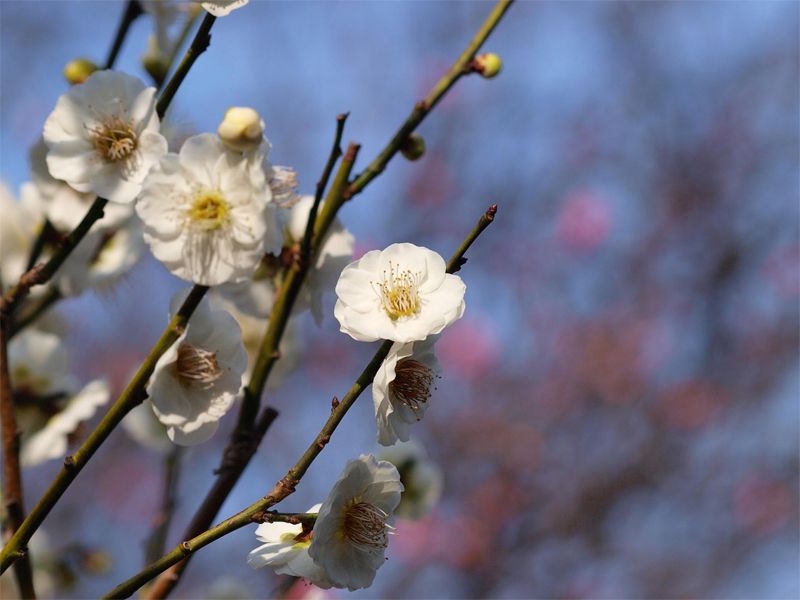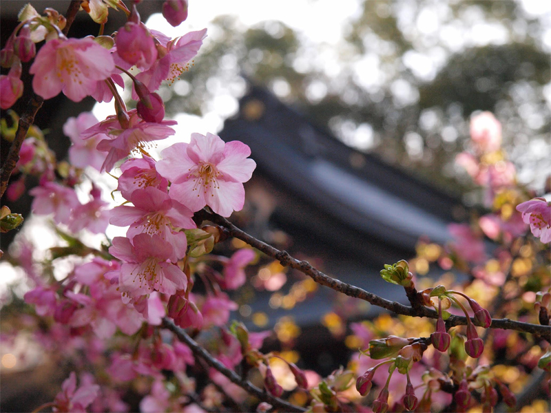 境内にあるまだ小さな木ですが、梅と一緒に桜が楽しめます。