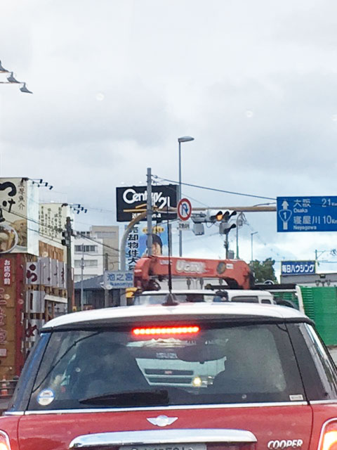 1枚目 台風の影響で信号機がクルッと回ってる!