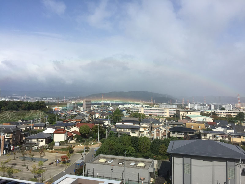台風明けの10月23日(月)樟葉~橋本間から淀川対岸に出ていた虹です。
