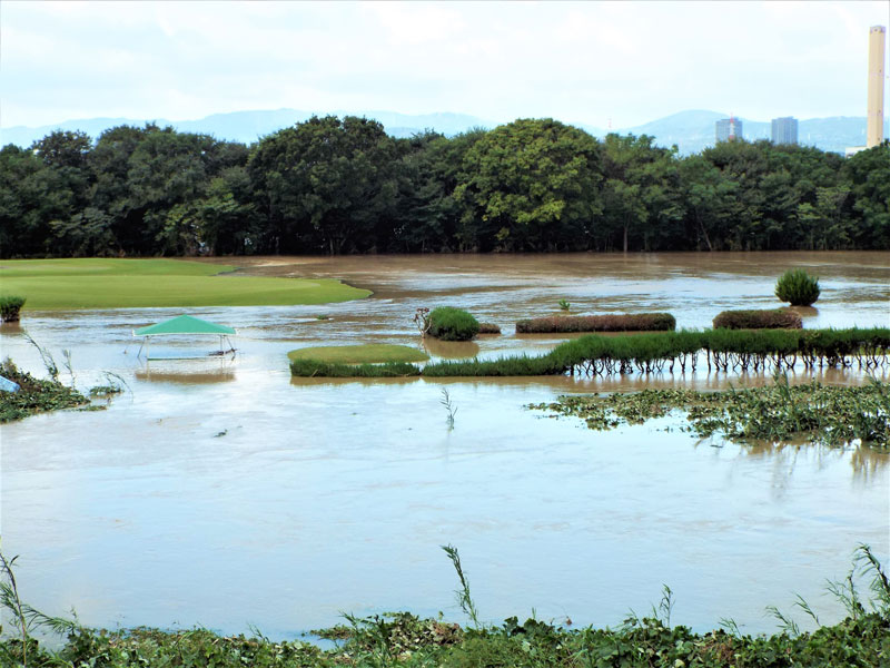 5年前の水没以来、やっと再生してきたという ゴルフ場の芝生が心配です。
