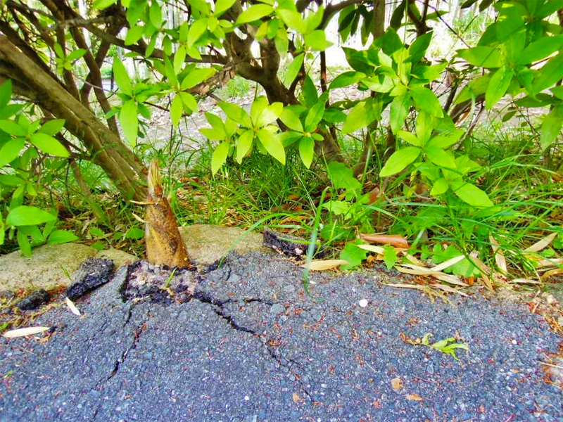 アスファルトを破った? のでしょうか、タケノコが出てきています。