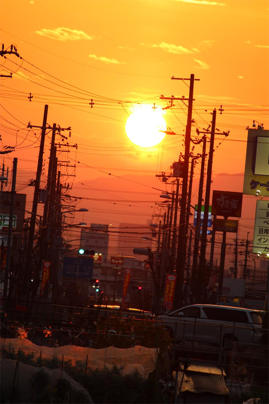 とうかえでの道に沈む夕日【枚方フォト】