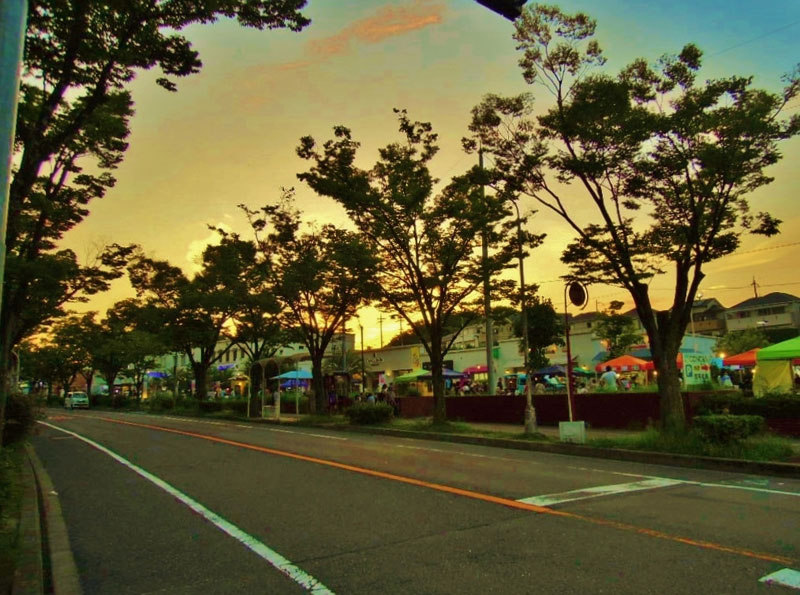 次の日CONOBAのケヤキマルシェを少しだけ覗きつつ歩いていると、やはり空がどんどん赤く染まっていき、細い月が耀いていました。