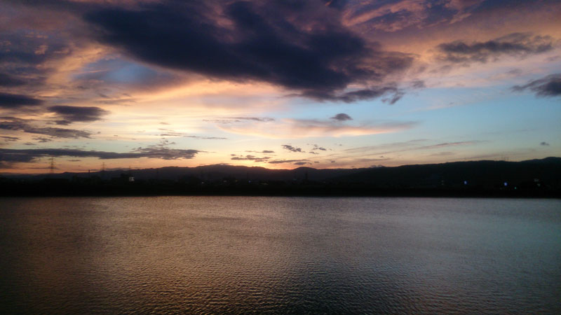 国道1号線の穂谷川橋と招提のあたりから夕景を撮りました。