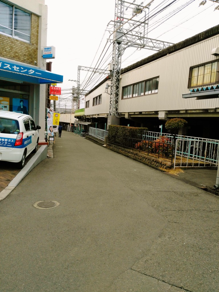 →線路沿いを大阪方面に進みます。(左手には牧野ガスセンターさんがあります)