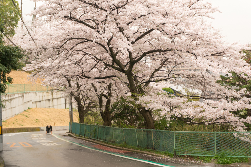以前ダッシュした、桜が綺麗な坂道の先にある高校です。