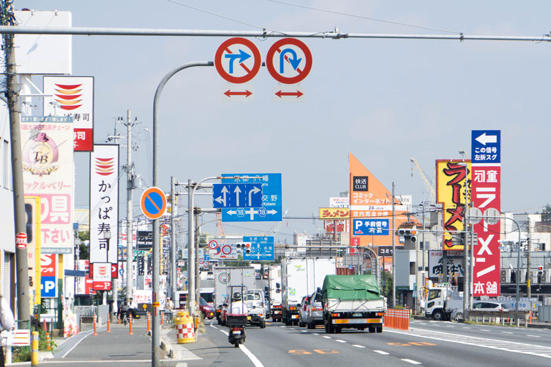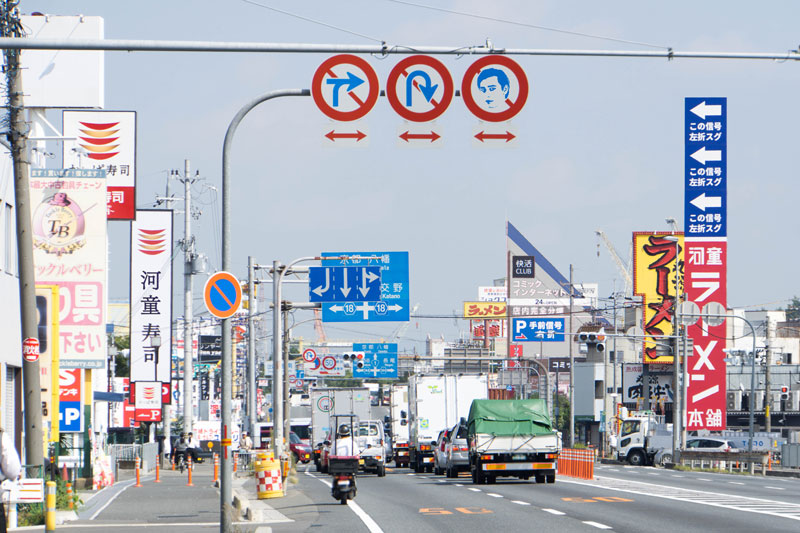 Q この国道1号線沿い出屋敷の画像のおかしいところはどこでしょう?(5つあります)