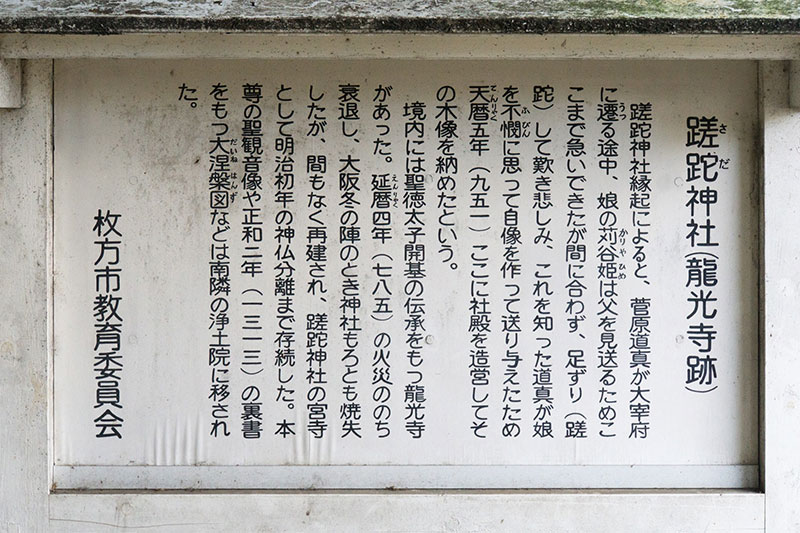 また、道真が姫をかわいそうに思って大宰府から自作の木像を送り与えたそうですがこの木像を御神体として社殿を設け氏神としたのが、蹉跎神社の起源なんだとか。