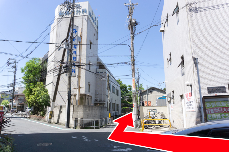 谷掛脳神経外科の手前を右折します。