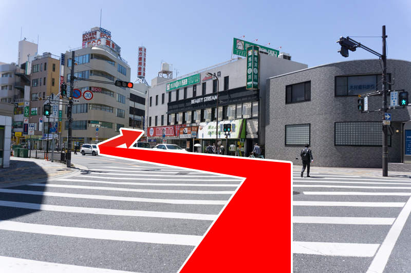 エル枚方側のスクランブル交差点を渡って、ミニミニ枚方店を越えて右折し…