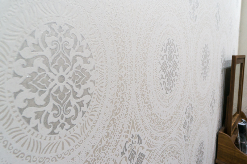 壁紙も美容室部分と変えてあります。細部までこだわった個室空間。
