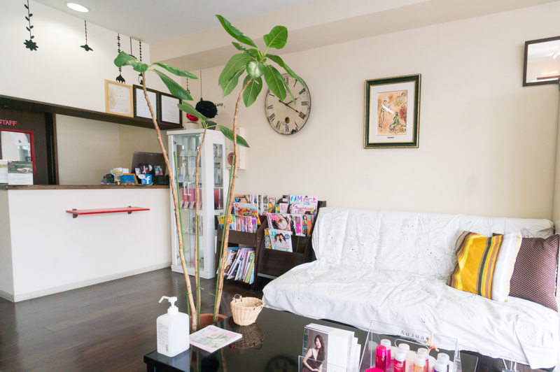 入って右側はゆったりソファの待合スペース。