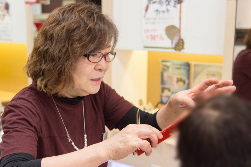 お客さんとも楽しく会話しながら手際よくカットしていました。