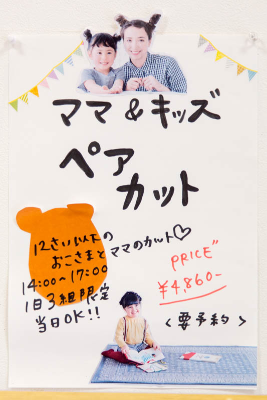 お母さんのカット料金だけで12才以下のお子さんのカットが無料になるというお得なもの。