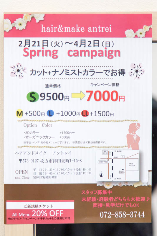 カット+ナノミストカラーのセットが2017年4月2日(日)まで、