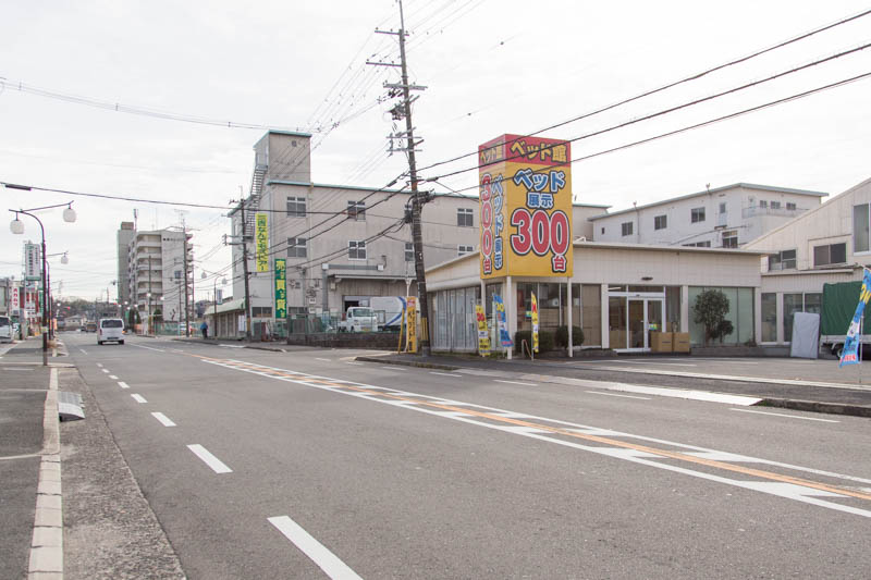 コッチへまっすぐ行くと、国道一号線の家具団地前交差点に突き当たります。