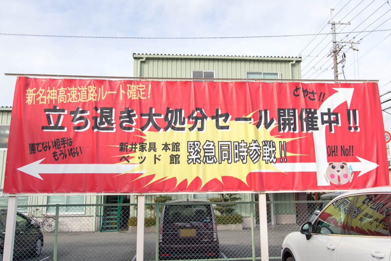 数年後の新名神高速道路の開通に伴って本館の立ち退きが決定したとのことで、立ち退きの補償額を原資にセールを開催しているのだそう。