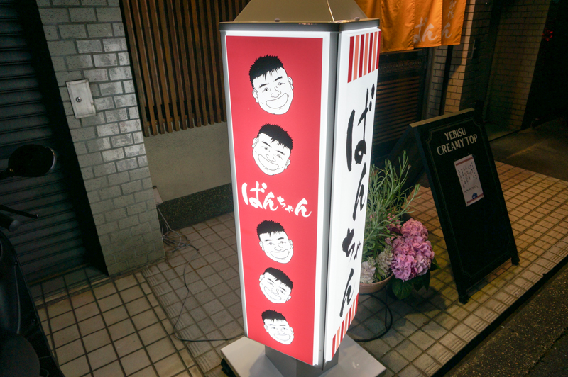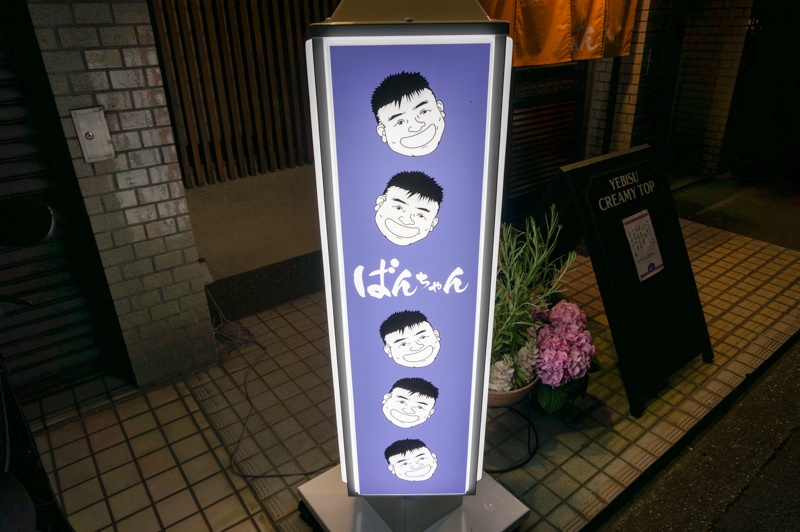 看板には「ばんちゃん」の似顔絵が。