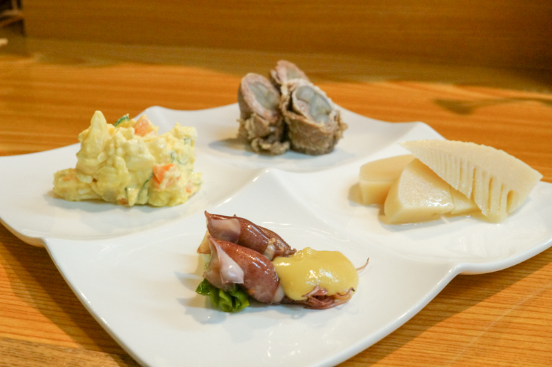 おまかせ一品四種盛合せ。旬の食材の一品料理です。春を感じますね〜