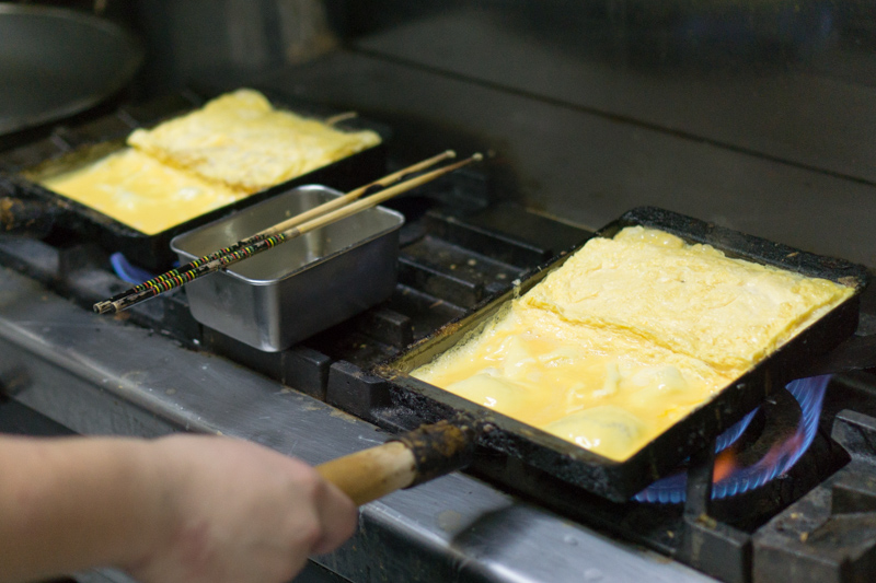 2つのコンロを使って焼き上げていく自慢の玉子もぜひ食べて欲しい一品とのこと。
