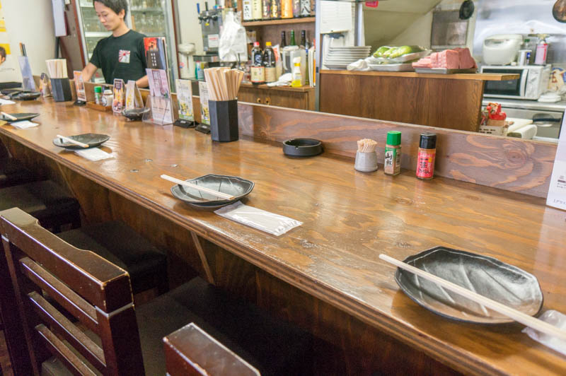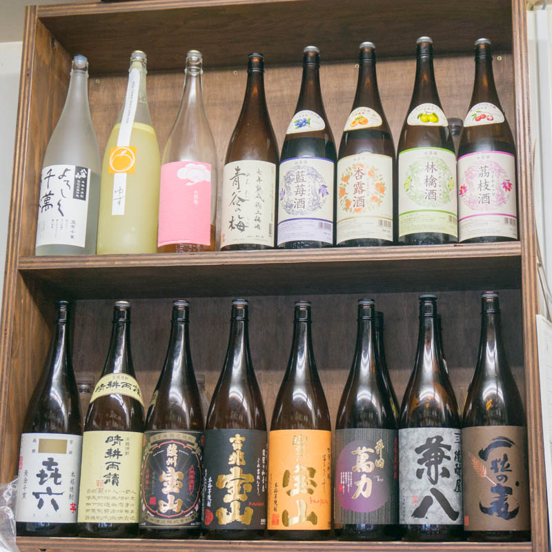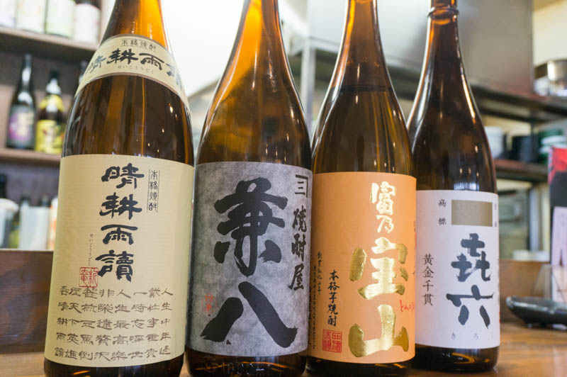 カウンターの奥には焼酎などのお酒の瓶が並んでいました。