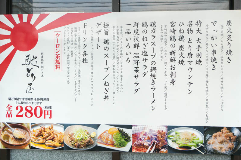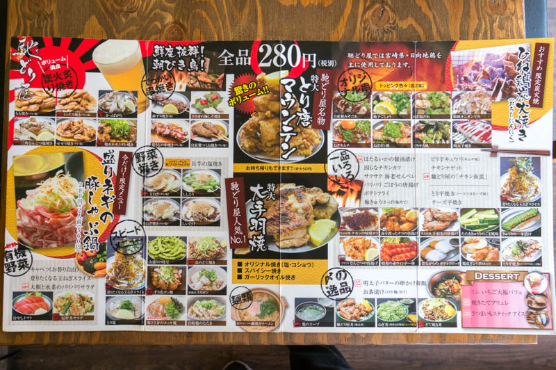 お店の外のメニュー看板には「全品280円(税別)」の文字が。