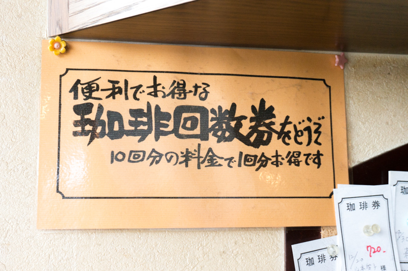 こちらのお店では、お得な珈琲回数券も販売されていて、