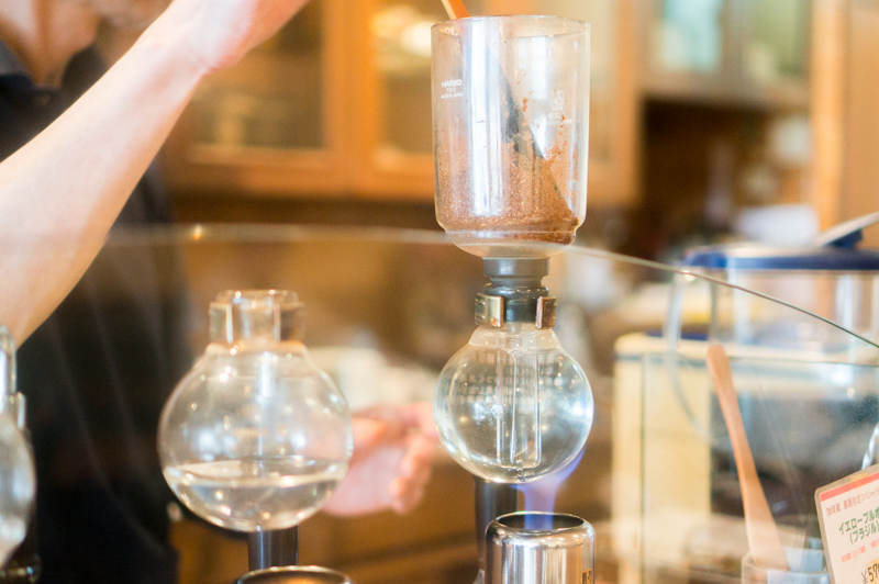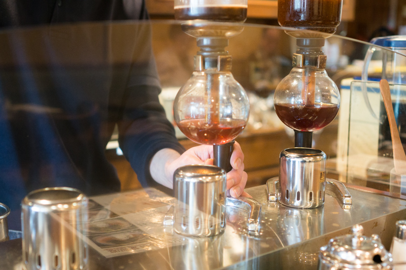ホットコーヒーには、サイフォンという抽出器具を使い、