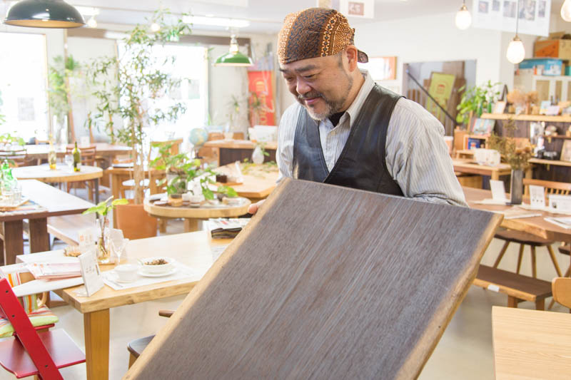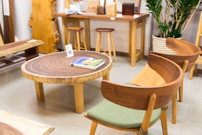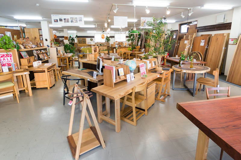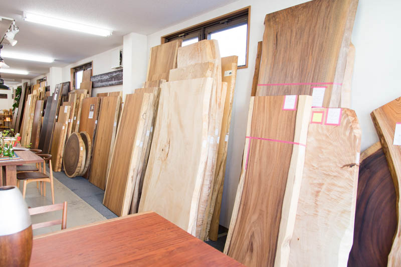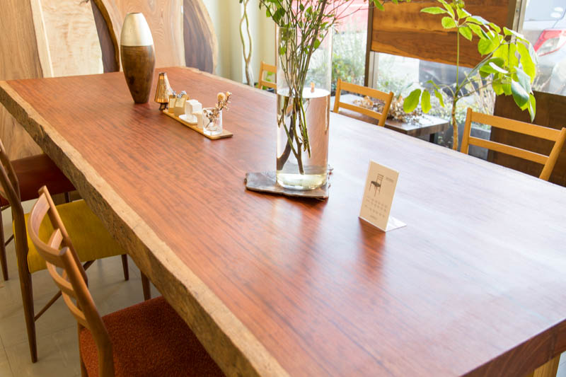 「一枚板のテーブル」を扱っているというだけあり、店内には一枚板のテーブルがたくさん。
