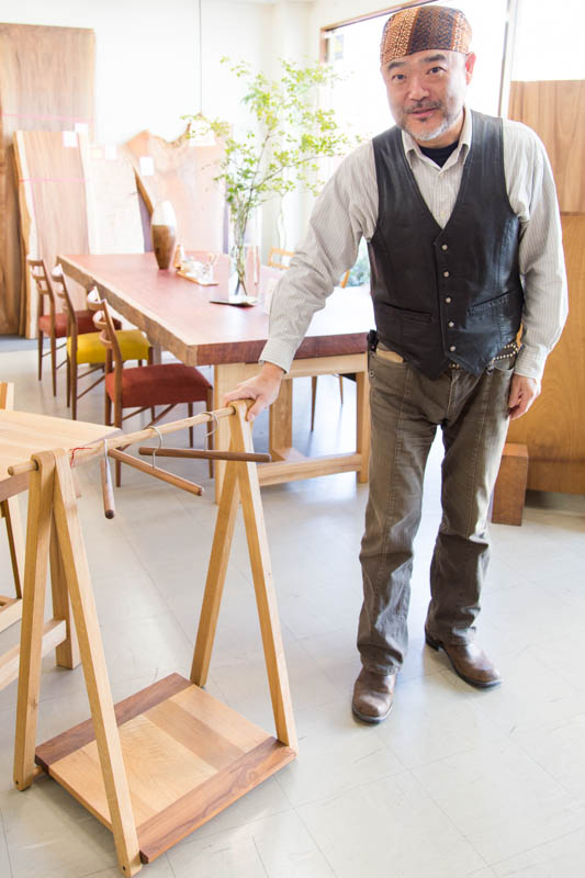 艮(うしとら)さんが手を置いているコチラの子供用のハンガーは以前体験教室で製作したもの。