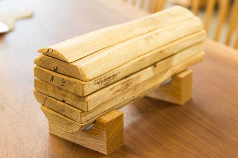 コチラは丸太を短冊切りにした一枚板の模型。