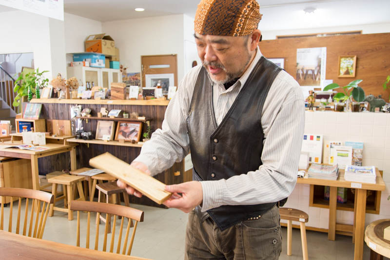 艮(うしとら)さん「海外の木はまっすぐのものが多く、国産の木はうねっているようなものが多いので独特の形状になっています。」