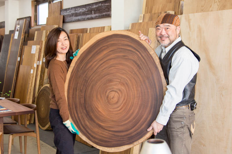 一枚板は敷居が高いと思われがちですが、どれもこの世にひとつしかない一点物なので、本当に気に入ったものに出会ったときには何ものにも代え難い価値がありますよ。