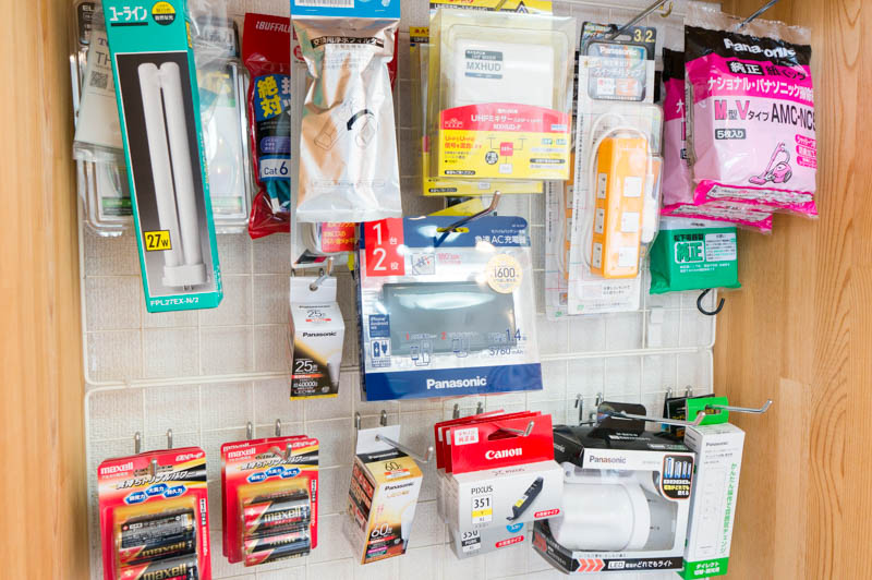 電球や電池、延長コードなどの日用品や、