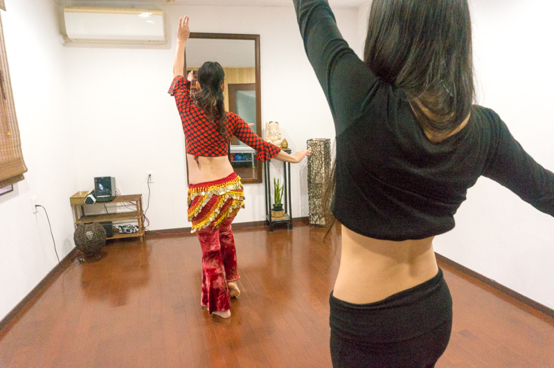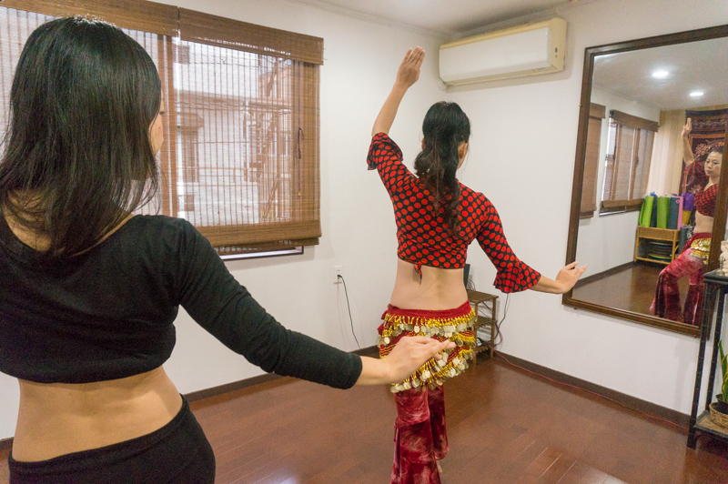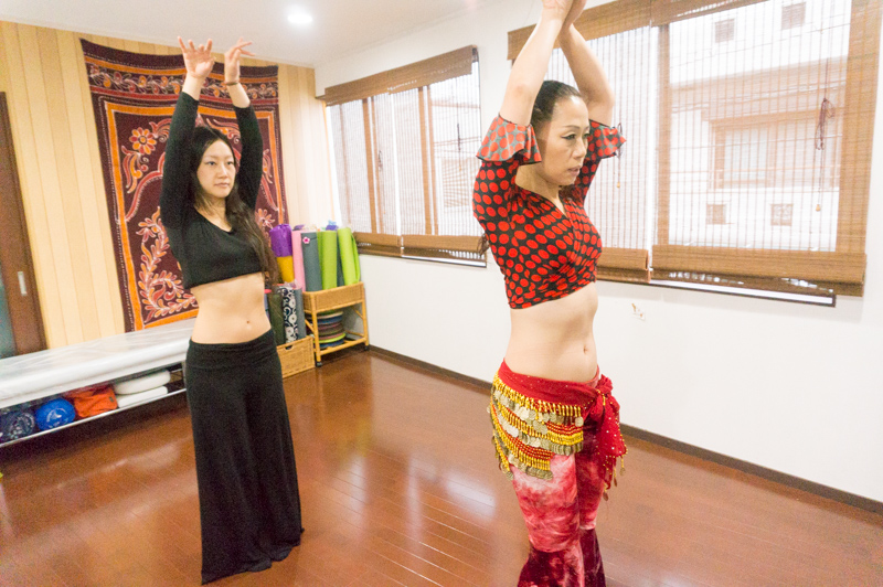 特別にベリーダンスのMAASA先生(右)の練習風景を見せてもらいました。