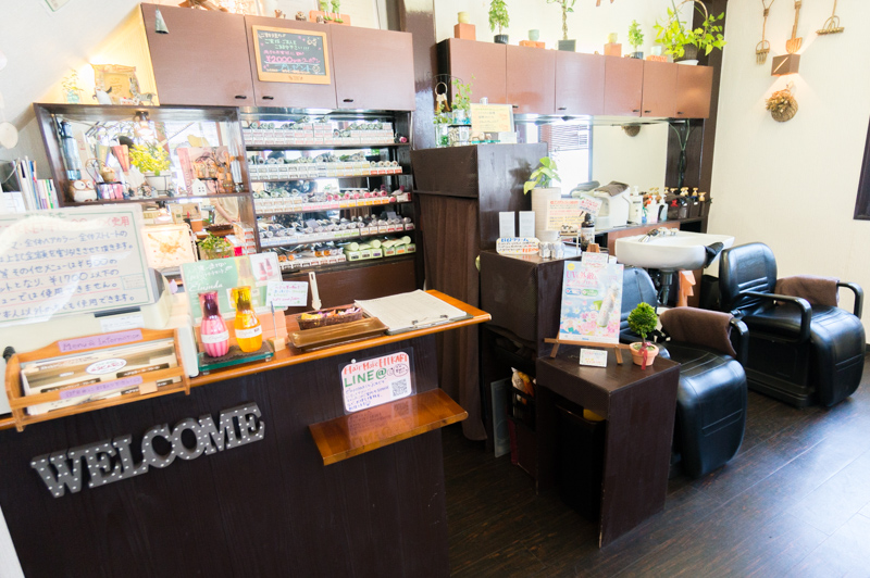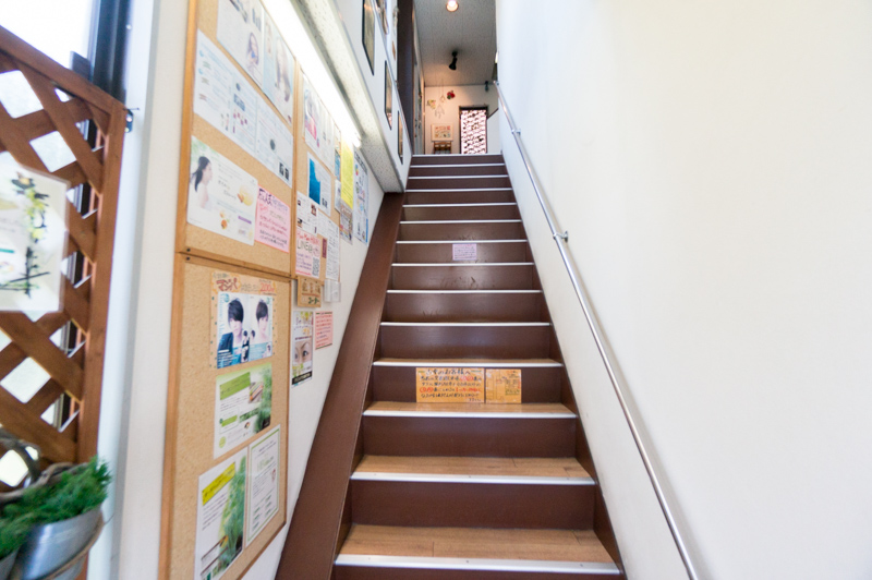サロンは2階にあり、入り口ドアから階段をのぼり受付の方へ進みます。