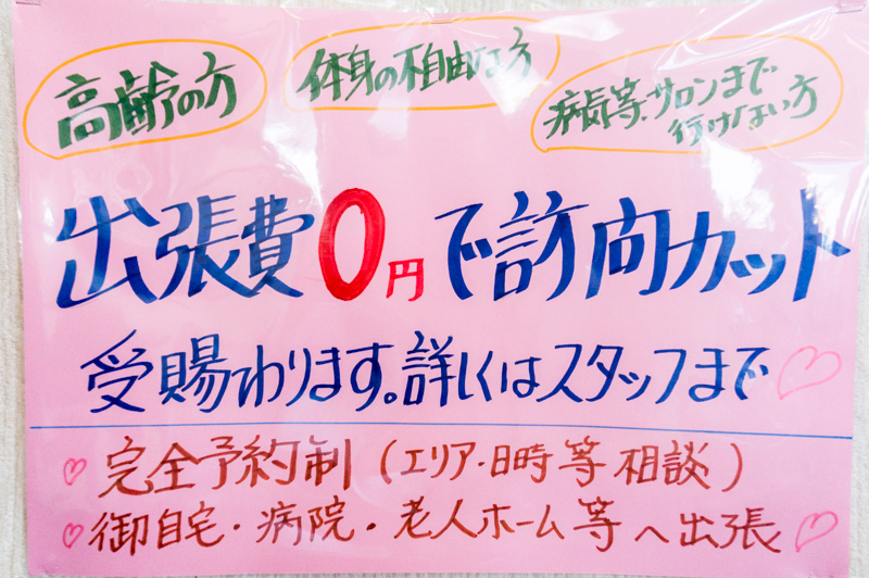 完全予約制の訪問カットもあり、出張費無料と嬉しいサービスも。
