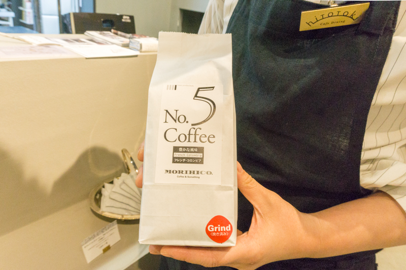 北海道にお店を構える珈琲店のもので、hitotokiで使用しているものは深煎り、苦味だけではなくうまみも味わえる珈琲豆なんだそう。大橋さんお墨付きの珈琲豆です。