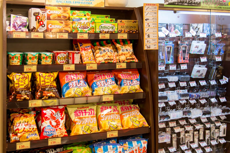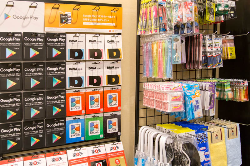 カウンターの前にはプリペイドカードや日用品の販売も。