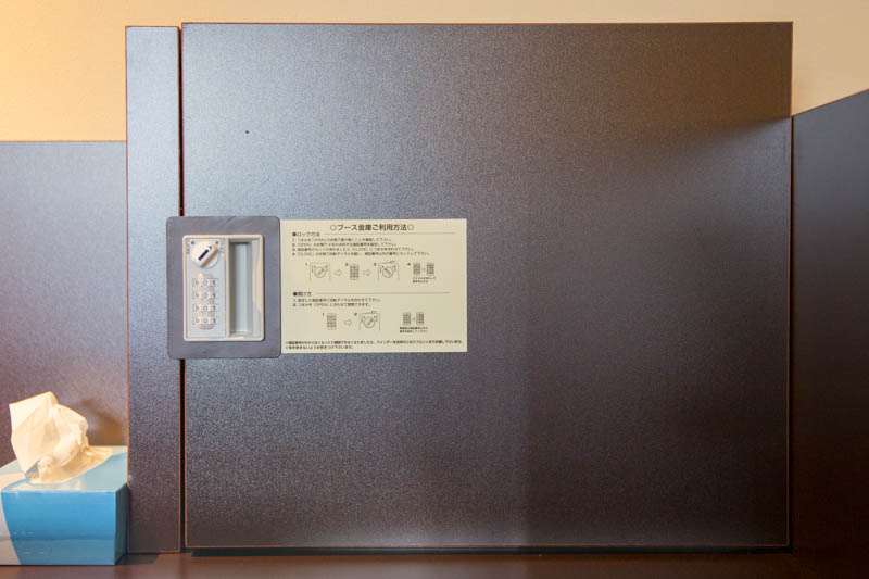 各ブースには貴重品を保管できる金庫が設置されているので、ドリンクなどを取りに席を離れるときも安心。