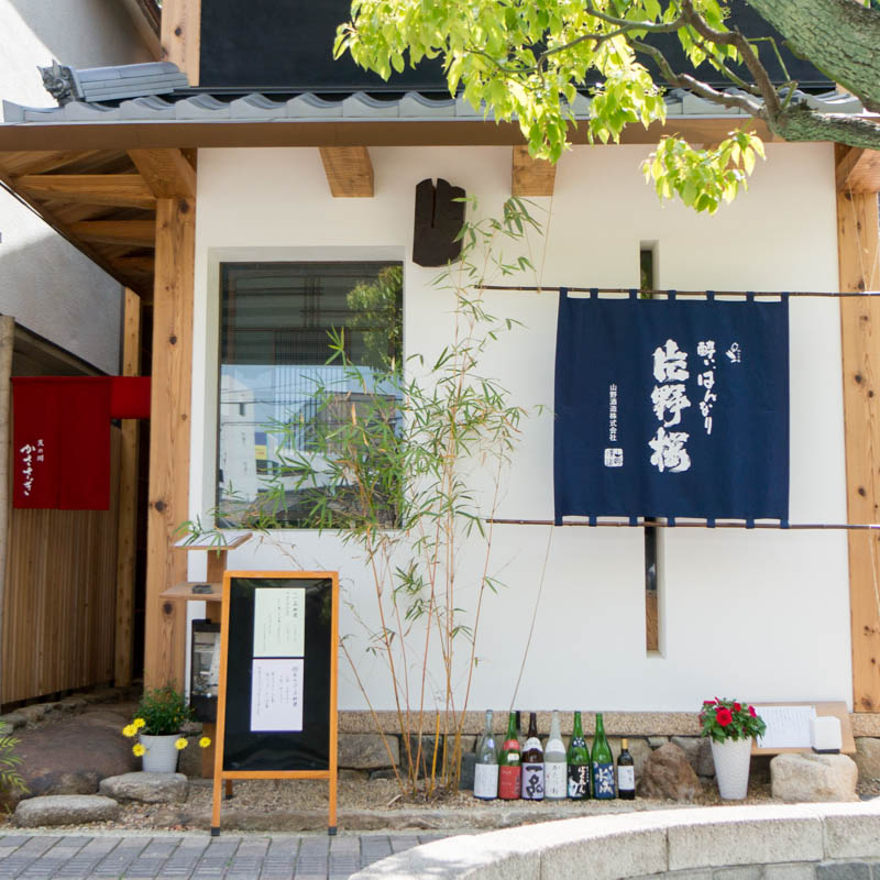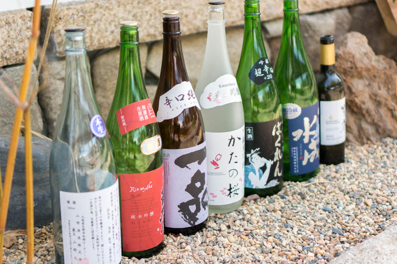 お店の前には扱っているお酒の空き瓶が並んでいます。
