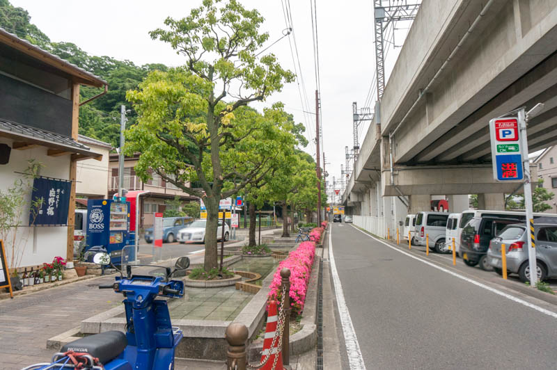 枚方市駅から枚方公園駅方面へ高架沿いに進むと、意賀美神社へ上がる階段の手前にあります。