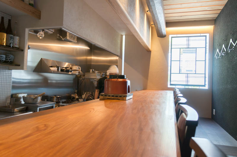 戸を開けると、そこには間接照明がキレイな落ち着いた雰囲気のカウンター席が。