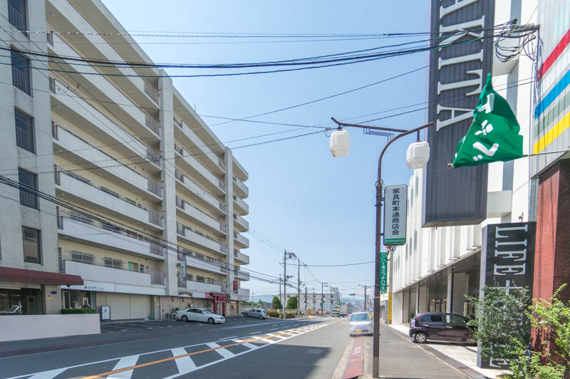 お店は家具団地内を通るスマイルロード沿いにあります。