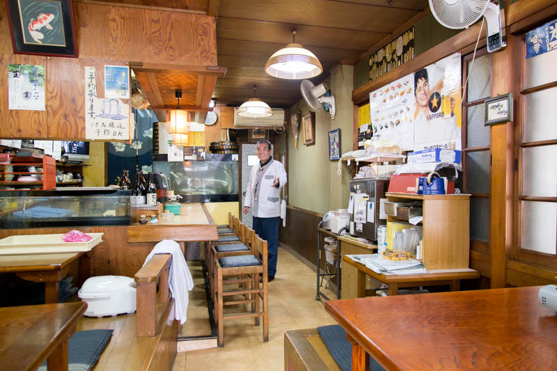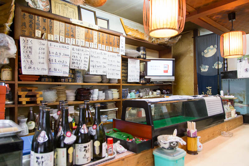 カウンターの奥にはお寿司のネタやお料理のメニューが貼られています。