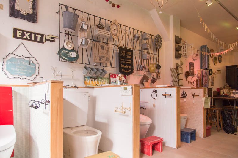 展示してあるトイレの周りにも雑貨が飾られています。