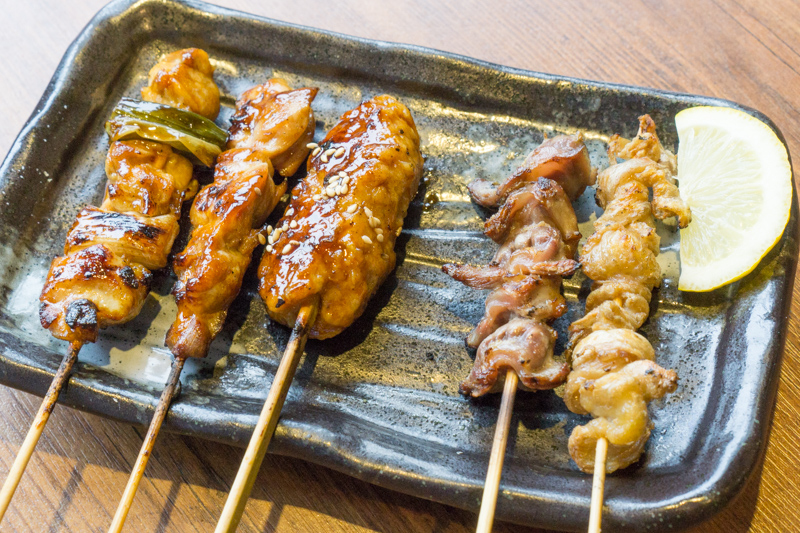 ねぎま(タレ)・もも(タレ)・つくね(タレ)・砂ずり(塩)・皮(塩)