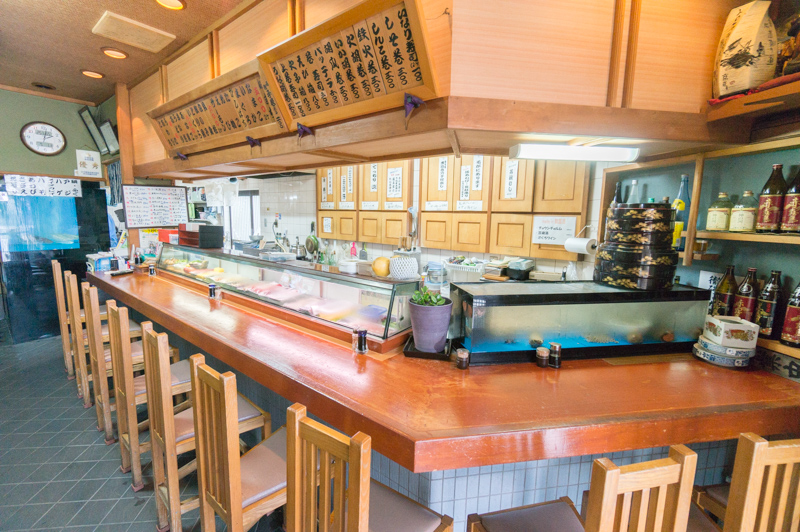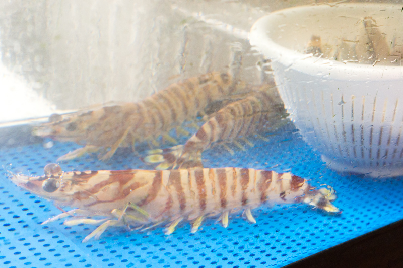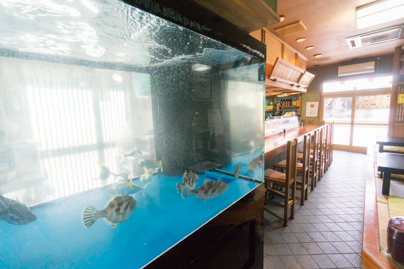 店内入ってすぐそばにあるカウンターの上には生け簀があり、